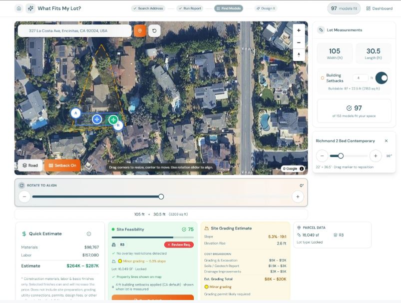 You’ll see best-fit footprints that respect privacy, sun, and access. Make sure it fits first.